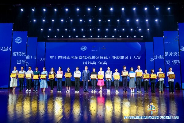 5月23日-26日,第十四届全国旅游院校服务技能(导游服务)大赛在河南郑州举办。经过激烈的角逐,公司2021级旅游管理对口班陈双晴、2023级旅游管理对口2班何家豪分别获得全国高等院校普通话组二、三等奖,2021级旅游管理1班刘庆、2022级旅游管理1班程毓琪获得全国高等院校英语组三等奖,团队总成绩排名全国前20%,荣获大赛团体奖。