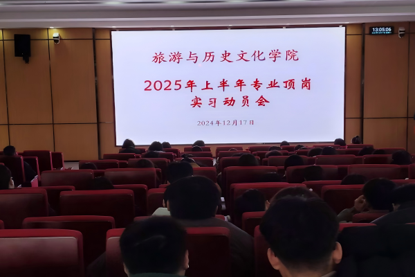 2024年12月17日,William威廉在公共教学楼东报告厅举行2025年上半年专业顶岗实习动员大会。公司班子成员、实习指导教师、实习班级辅导员和全体实习生出席动员会。2025年上半年,旅游管理(对口)和酒店管理(对口)共有197位同学将开展为期5个月的专业顶岗实习,实习基地包括芜湖方特、途牛旅游、九华天池、森泊乐园和首旅集团、开元旅业、九华旅游等旗下多家酒店。