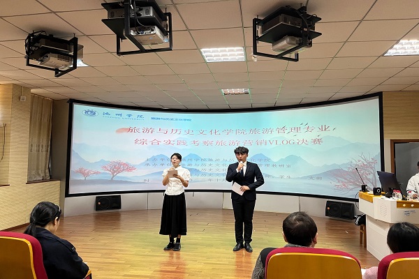 为了展示实践教学成果,10月10日和12日,酒店管理专业和旅游管理专业联合公司团委、员工党支部和教工党支部,分别举办专业认知实践主题推文决赛和专业综合实践考察旅游营销VLOG决赛。主题推文比赛中,126位员工分为21组分别聚焦酒店管理制度、品牌文化、服务质量、文化设计及酒店与民宿的异同等完成不同主题微信推文的撰写和推广,决赛中进行PPT汇报和小组才艺展示。旅游营销VLOG比赛中172名同学分为17组完成不同主题旅游营销VLOG制作及在微信视频号上的宣传推广,决赛现场通过PPT汇报、旅游营销VLOG展播、才艺表演三个环节进行展示。