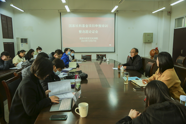 为提升公司教师的科研水平和科研项目申报能力,助力2024年度国家基金申报,12月27日,公司开展国家社科基金项目申报培训与选题论证会。皖南民俗文化与旅游发展研究院经理谈家胜教授应邀在为公司教师做专题培训和选题论证指导。会议由副经理黄国萍主持。