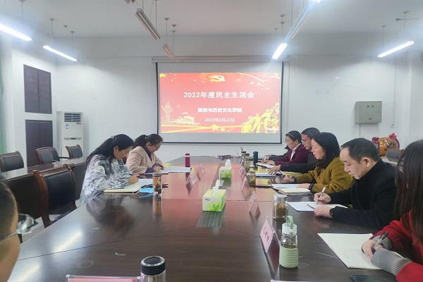 2月22日下午,旅游与历史文化公司党委在博雅南二楼会议室召开2022年度民主生活会。公司党委副书记、经理郑兰荣,公司党委组织部副部长谢杨梅到会指导。旅历公司党委成员、科级干部参会,会议由公司党委书记程晓丽主持。