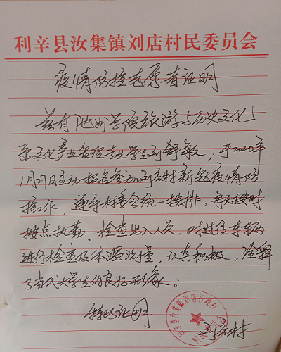 张柱伟是公司2018级历史学(专升本)班的一名员工,新冠肺炎爆发之际,他主动向所在村委会提出申请参与疫情防控,从1月27日起,就奋战在疫情防控第一线,并担任村民组防控网格长,除在卡点日常值守外,在轮休时还下队宣传疫情防控知识,在村里复工复产后,他又参与到来村务工外来人员摸排工作中,直到现在他依然坚守在志愿服务岗位,为郎溪县疫情防控工作做出了重要贡献。