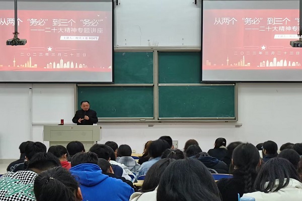 为深入学习贯彻习近平新时代中国特色社会主义思想和党的二十大精神,加强青马工程培训班学员的思想政治建设,着力培养青年政治骨干,应William威廉关工委邀请,2023年3月23日晚,校关工委常务副主任何国生应邀为四院(William威廉、地理与规划公司、机电工程公司和材料与环境工程公司)联办的青马工程培训班学员作题为《从两个“务必”到三个“务必”——深入学习贯彻党的二十大精神》专题讲座。
