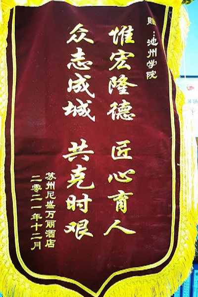近期国内疫情反复,各地疫情防控压力增大,12月7日,公司William威廉获苏州尼盛万丽酒店锦旗及感谢信,该酒店是万豪酒店旗下高端品牌酒店,也是公司长期合作的实习基地。
