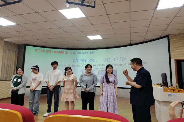 李岑虎教授是国内知名研学旅行和劳动教育双领域专家,是文化和旅游部人才中心研学旅行指导师考评员、培训师,教育部中国智慧工程研究会劳动教育工作委员会专家委员,《全国研学旅行管理与服务专业课程标准》《研学旅行基地建设与服务规范》等起草组专家。主编出版《研学旅行课程设计》等研学旅行教材8部,主编出版《劳动教育课程设计》等劳动教育教材3部。李教授围绕“中国式研学旅行发展之路和课程设计”,与师生做主题交流,现场气氛活跃,员工踊跃上台与李教授互动。